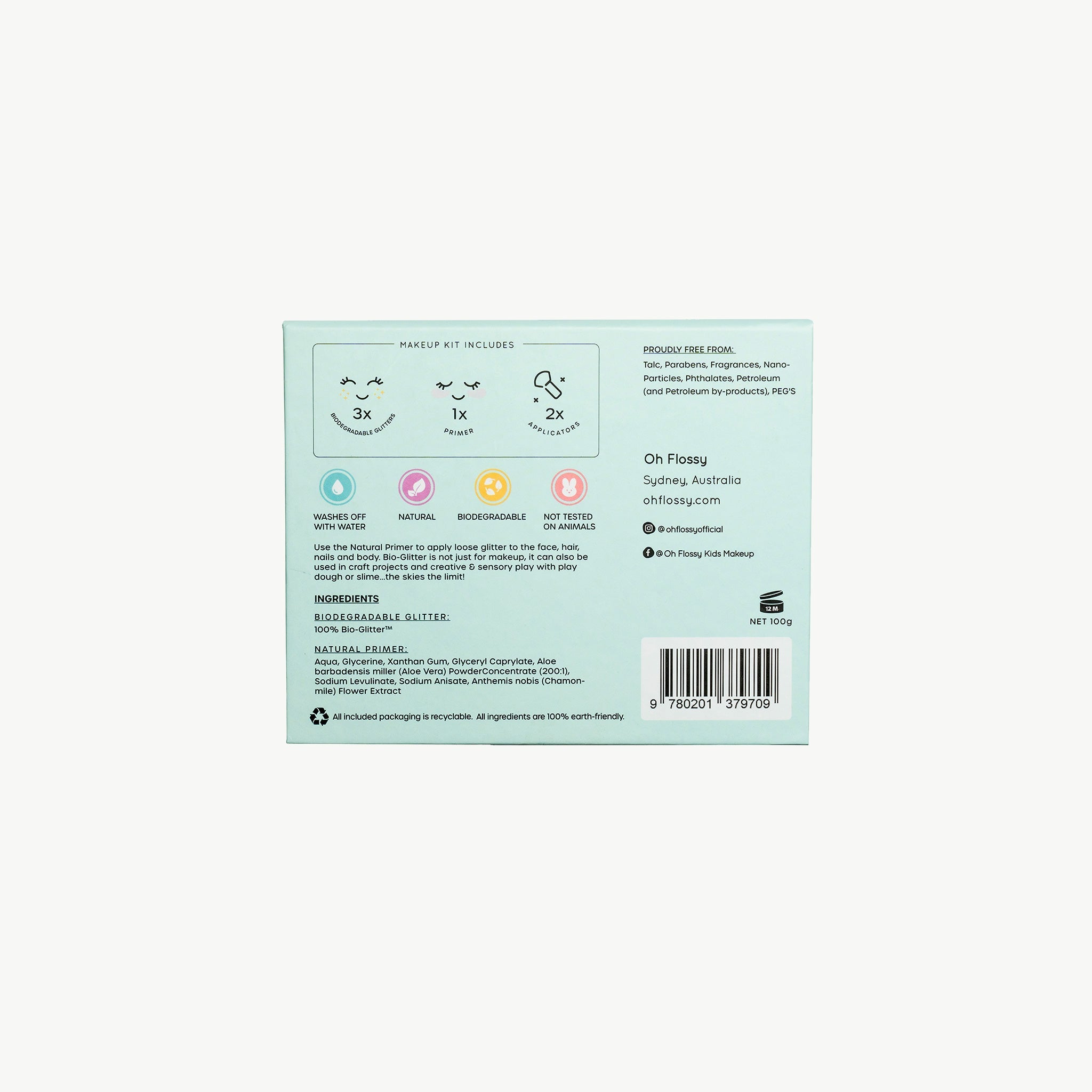 Have a sparkly time with the Oh Flossy Sparkly Glitter Set for kids. This set has everything you need to dress up and play! Your little one will shine brighter when wearing our Biodegradable Glitter and they will love getting creative by mixing the colours to make their own designs.