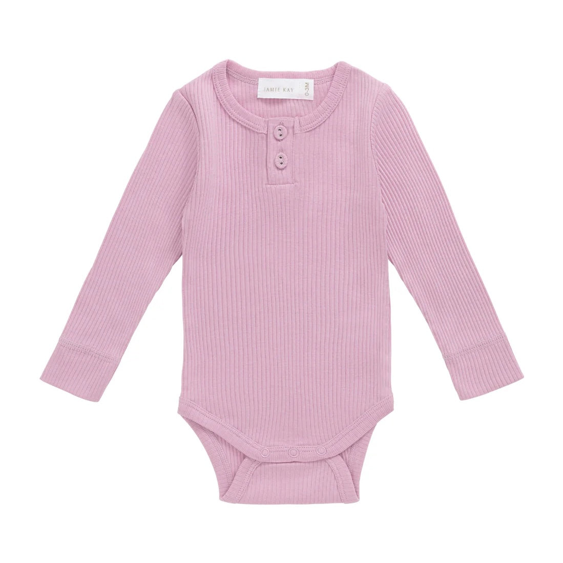Organic Cotton Modal Long Sleeve Bodysuit - Dahlia