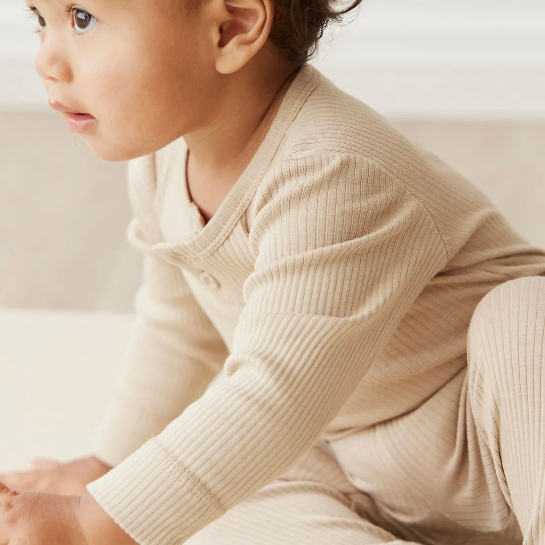 Organic Cotton Modal Long Sleeve Bodysuit - Fawn